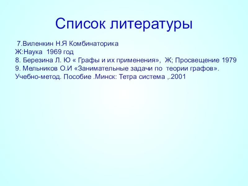 9. Мельников О.И «Занимательные задачи по теории графов».
