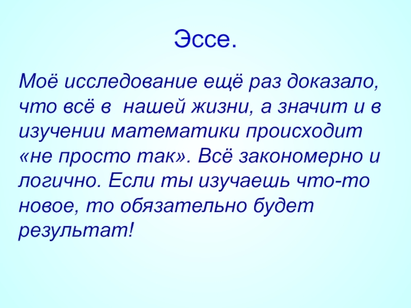 значит и в изучении математики происходит «не просто так». Всё закономерно и логично. Если ты изучаешь что-то новое, то обязательно будет результат!