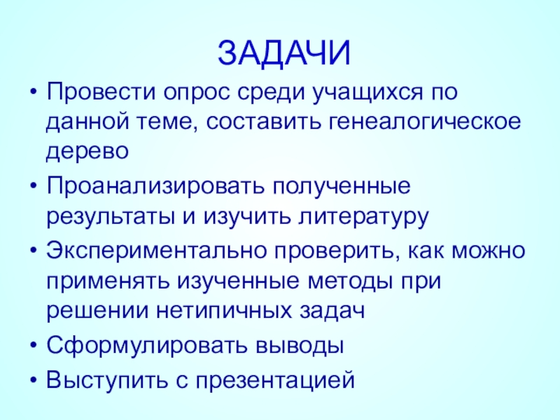 Провести опрос среди учащихся по данной теме, составить генеалогическое дерево