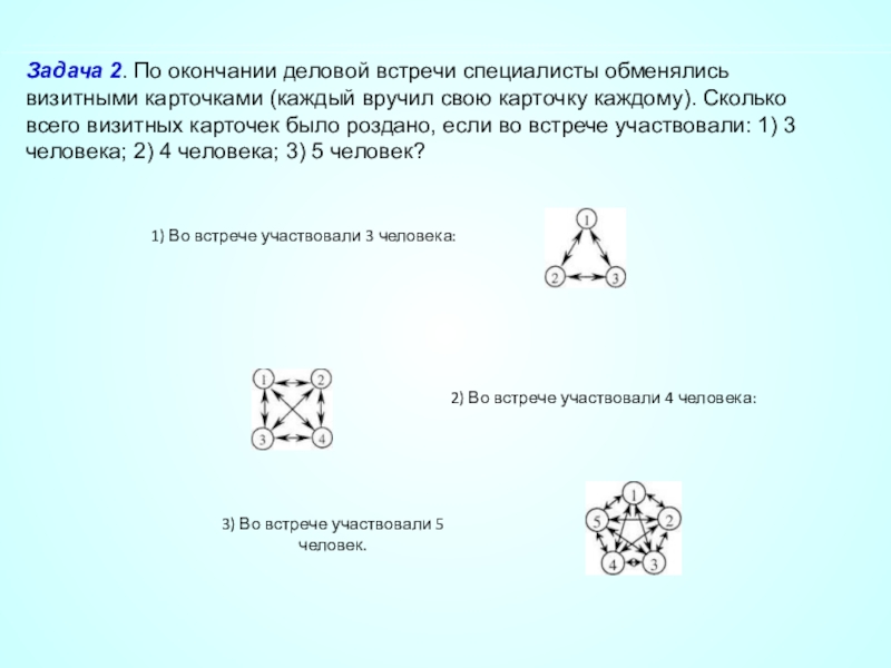 Слайд 44Задача 2. По окончании деловой встречи специалисты обменялись визитными карточками (каждый
