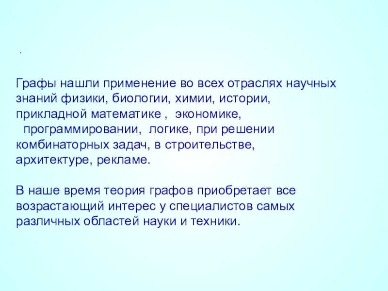 Слайд 60Графы нашли применение во всех отраслях научных знаний физики, биологии, химии,