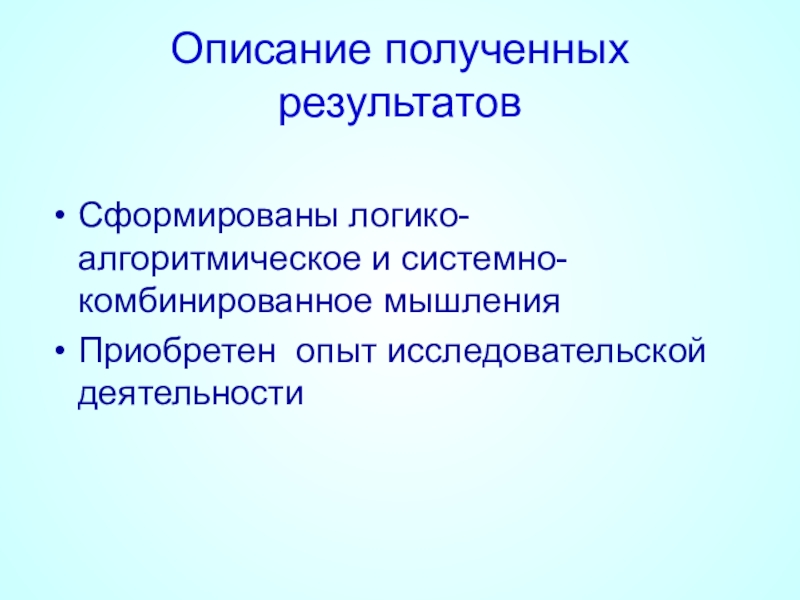 Сформированы логико-алгоритмическое и системно-комбинированное мышления