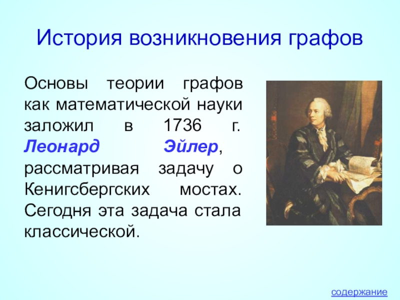 Слайд 3Впервые с задачами, для решения которых используются графы, мы встретились на