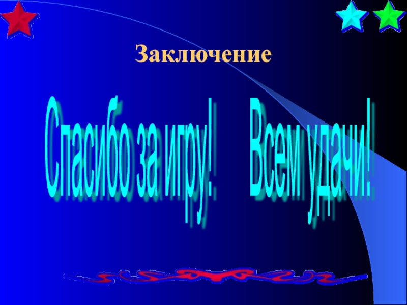 ЗаключениеСпасибо за игру!   Всем удачи!