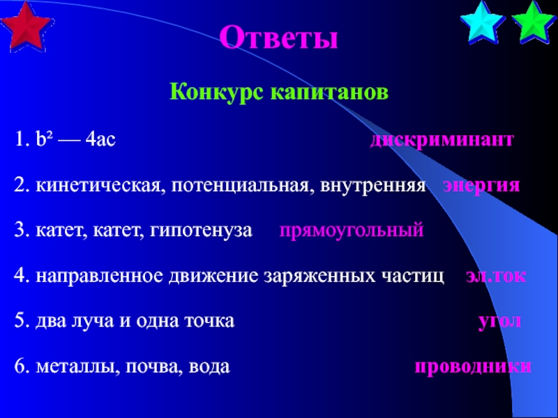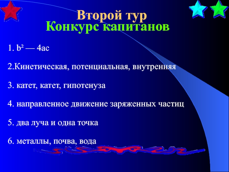 Второй тур        Конкурс капитанов1. b² — 4ac