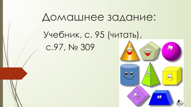 Домашнее задание:Учебник, с. 95 (читать), с.97, № 309