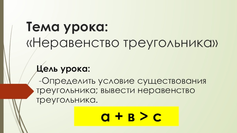 Тема урока: «Неравенство треугольника»Цель урока: -Определить условие существования треугольника; вывести неравенство треугольника.   а + в
