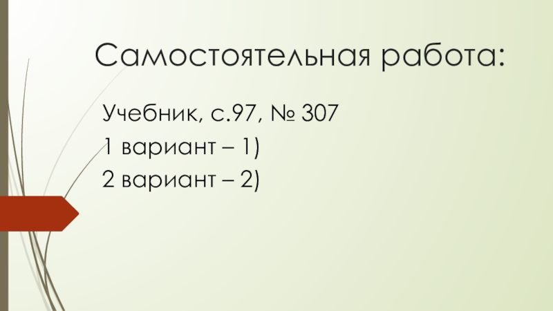 Самостоятельная работа:Учебник, с.97, № 3071 вариант – 1)  2 вариант – 2)