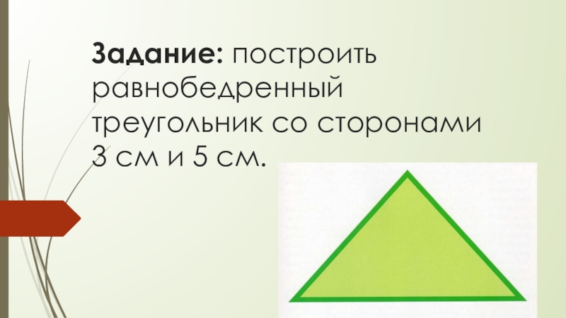 Слайд 3Задание: построить равнобедренный треугольник со сторонами 3 см и 5 см.