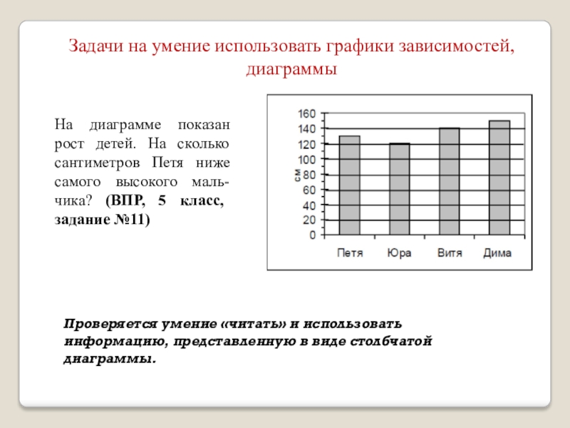 На сколько сантиметров Петя ниже самого высокого маль-чика? (ВПР, 5 класс, задание №11)