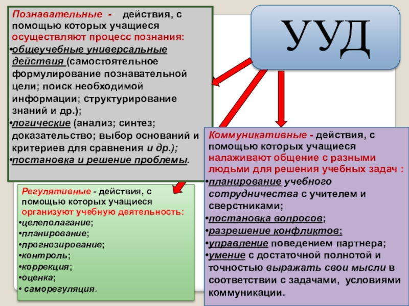 Познавательные - действия, с помощью которых учащиеся осуществляют процесс познания: