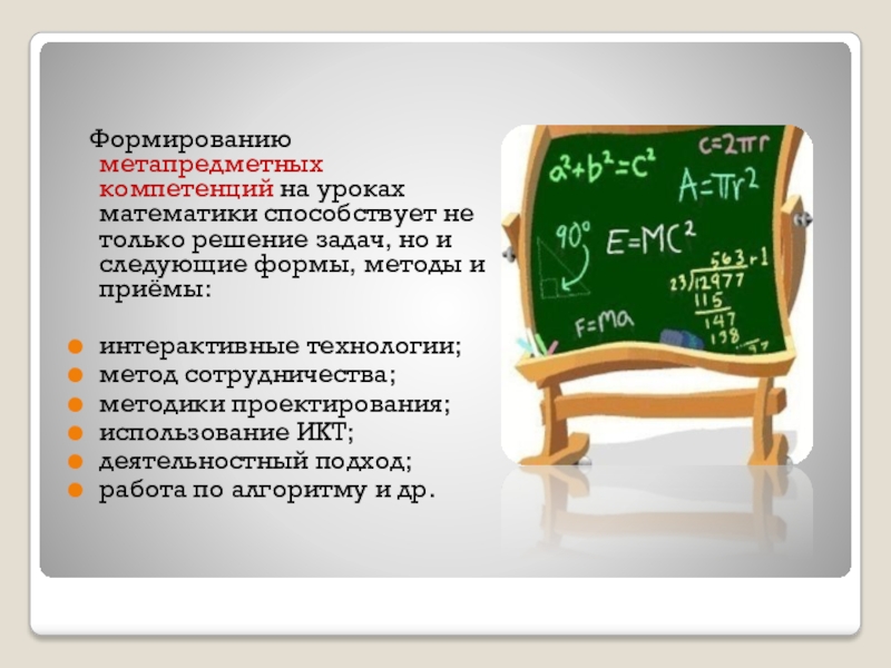 Слайд 12 Формированию метапредметных компетенций на уроках математики способствует не только