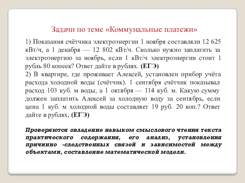 Слайд 5Задачи по теме «Коммунальные платежи»