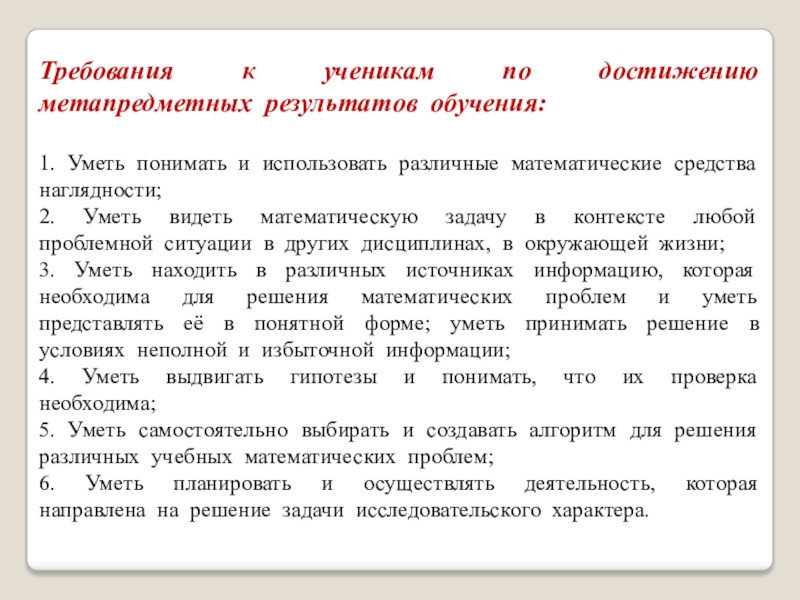 Слайд 4Требования к ученикам по достижению метапредметных результатов обучения: