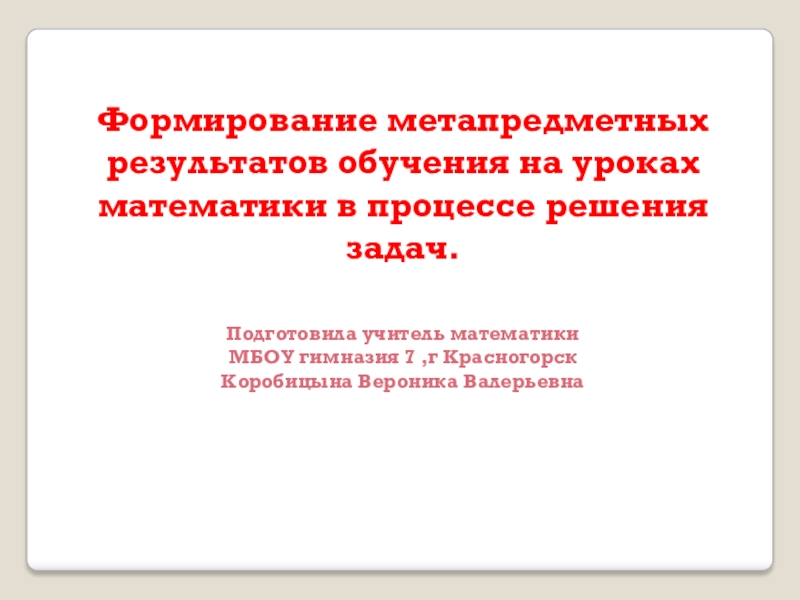 Слайд 1Формирование метапредметных результатов обучения на уроках математики в процессе решения задач.