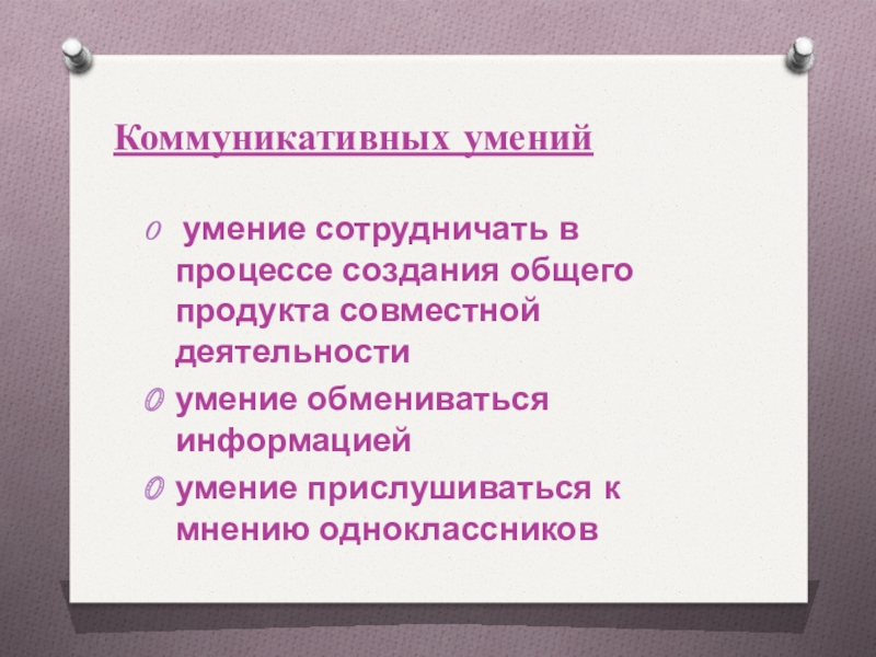 умение сотрудничать в процессе создания общего продукта совместной деятельности