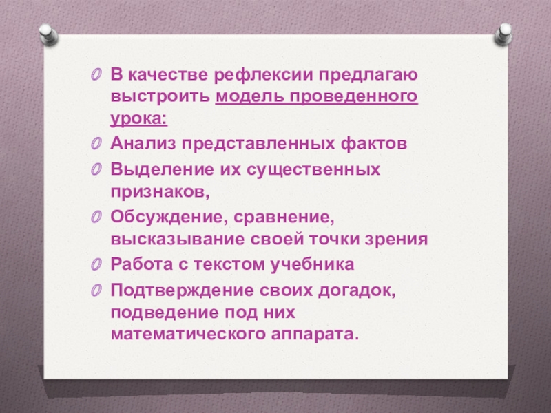В качестве рефлексии предлагаю выстроить модель проведенного урока: