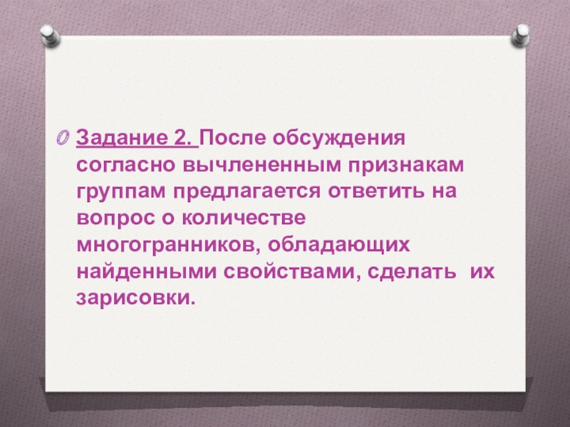 Задание 2. После обсуждения согласно вычлененным признакам группам предлагается ответить на