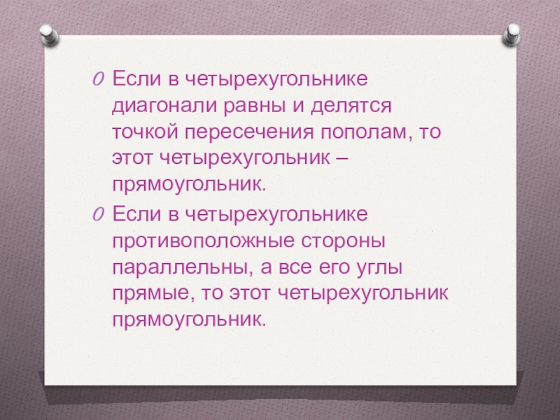 параллелограмме два угла прямых, то этот параллелограмм – прямоугольник.