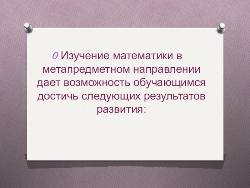 Изучение математики в метапредметном направлении дает возможность обучающимся достичь следующих результатов