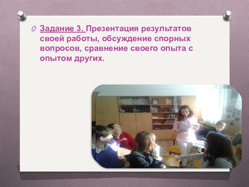 Задание 3. Презентация результатов своей работы, обсуждение спорных вопросов, сравнение своего
