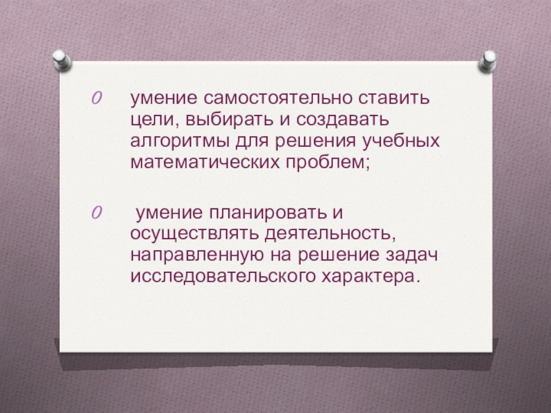 умение самостоятельно ставить цели, выбирать и создавать алгоритмы для решения учебных