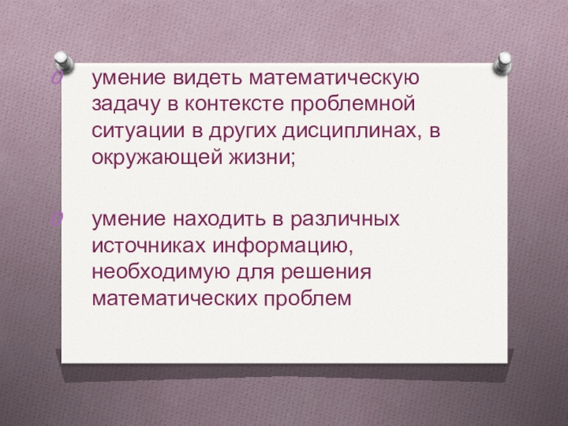 умение видеть математическую задачу в контексте проблемной ситуации в других дисциплинах,