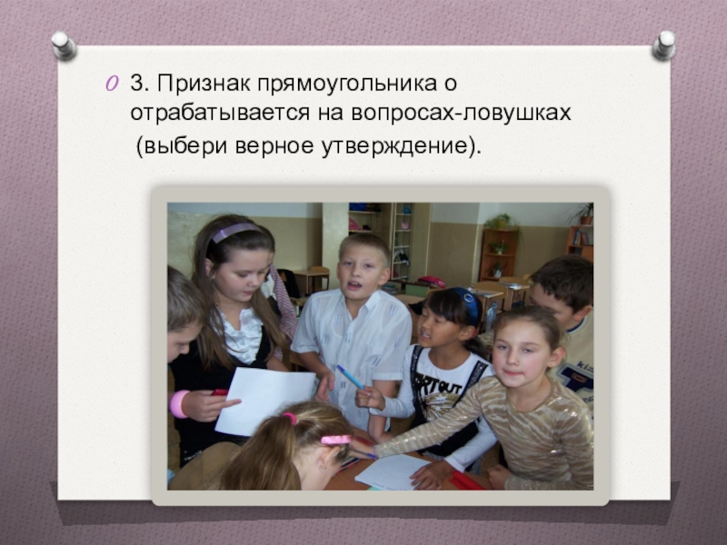 3. Признак прямоугольника о отрабатывается на вопросах-ловушках