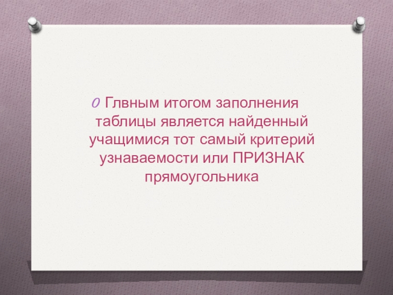 Глвным итогом заполнения таблицы является найденный учащимися тот самый критерий узнаваемости