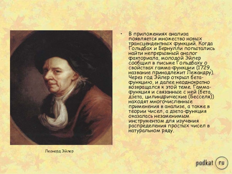 В приложениях анализа появляется множество новых трансцендентных функций. Когда Гольдбах