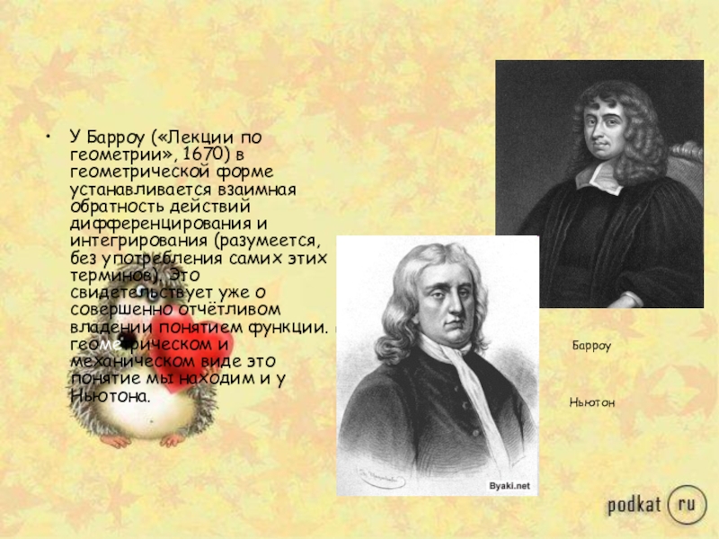 У Барроу («Лекции по геометрии», 1670) в геометрической форме устанавливается взаимная