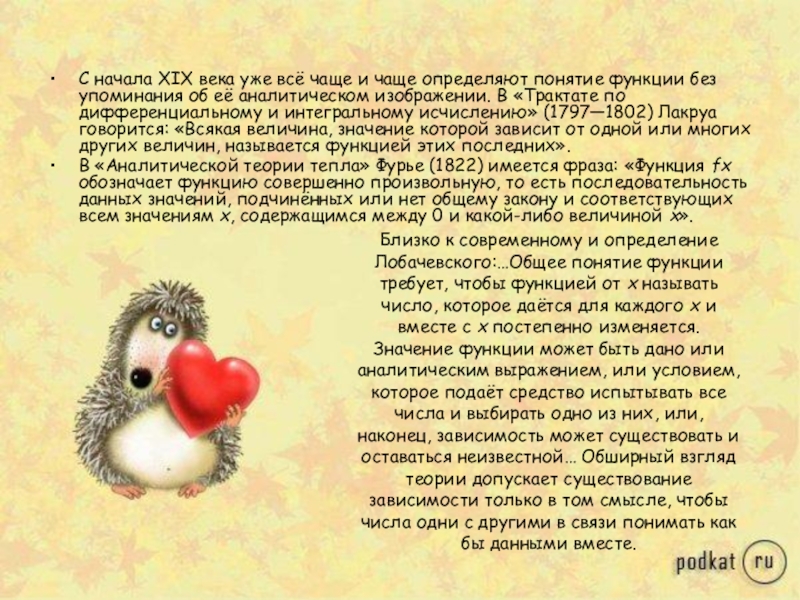 Слайд 14Близко к современному и определение Лобачевского:…Общее понятие функции требует, чтобы функцией