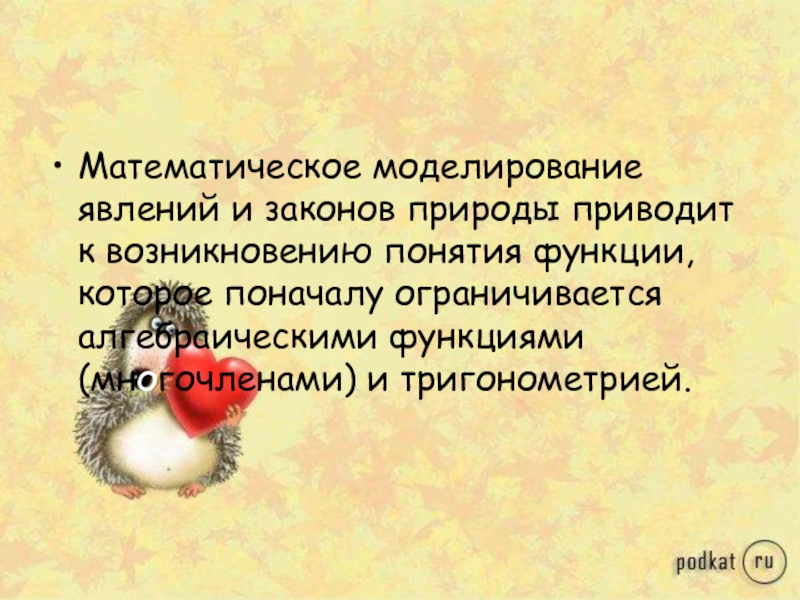 Математическое моделирование явлений и законов природы приводит к возникновению понятия функции,