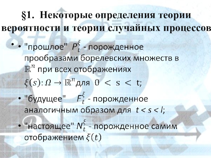 Слайд 2§1. Некоторые определения теории вероятности и теории случайных процессов