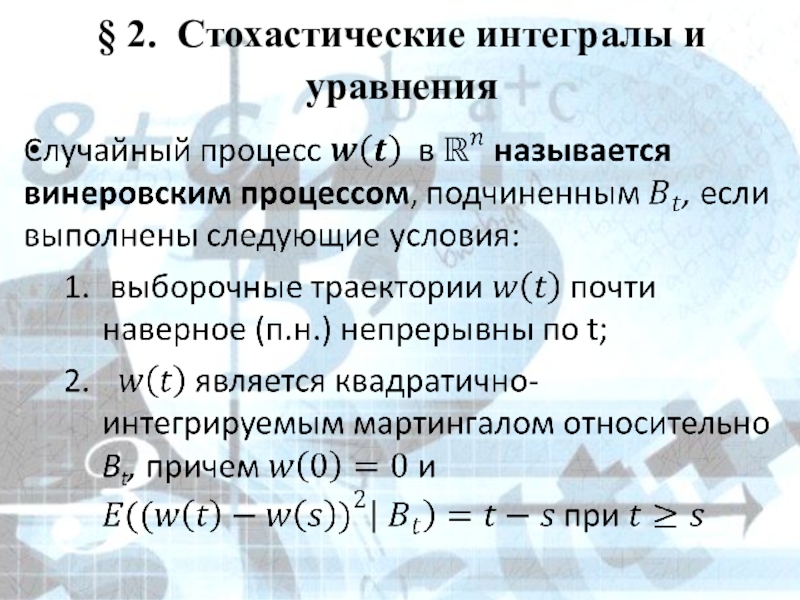 Слайд 3§ 2. Стохастические интегралы и уравнения