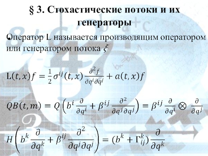 Слайд 4§ 3. Стохастические потоки и их генераторы