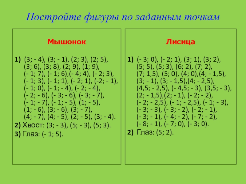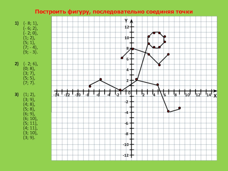 (2; 5), (5; 4), (5; 3), (4; 4), (1; 2), (1; 0), (3; -4), (4; -5), (1;-7), (1; -6), (0; -4), (-2; -7), (-1,5; -8), (-5; -7), (-4; -6), (-5; -4), (-7;-5), (-7; -7), (-6,5; -8), (-10,5; -8), (-10; -7), (-10; -6), (-11; -7),
