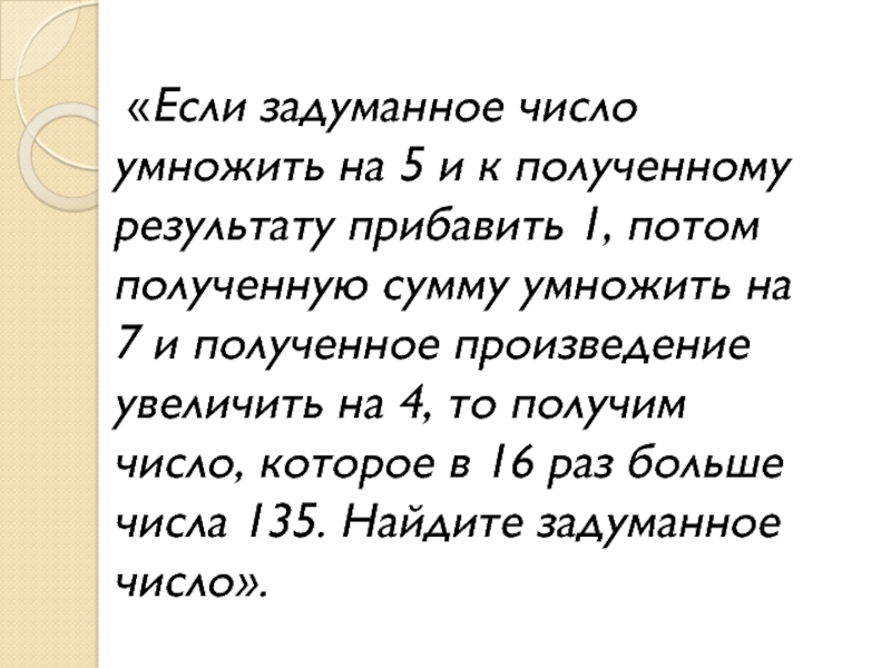Слайд 19 «Если задуманное число умножить на 5 и к полученному результату прибавить
