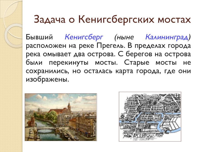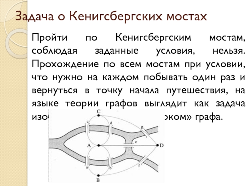 мостам и вернуться в начальный пункт, причём на каждом мосту следовало побывать только один раз.