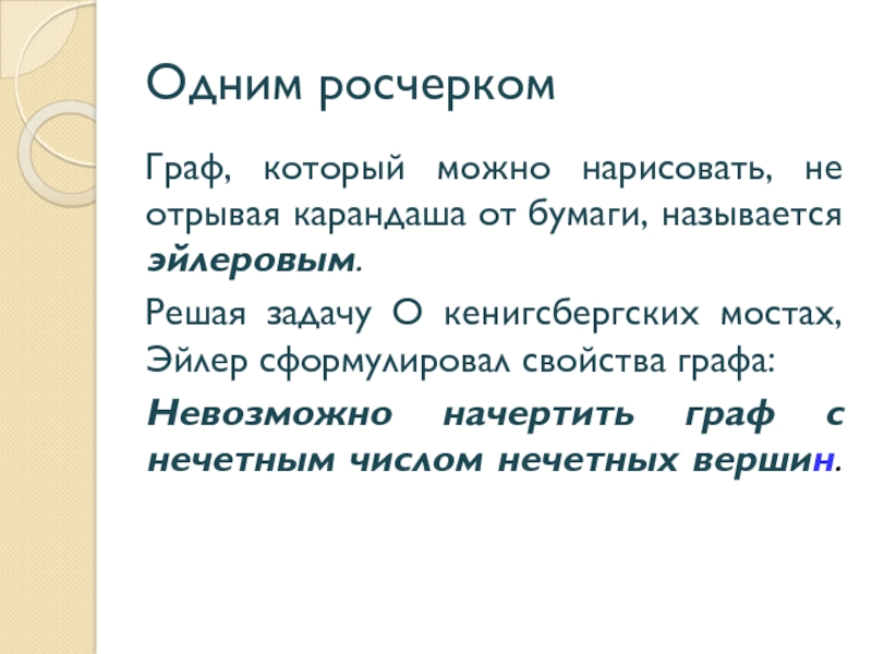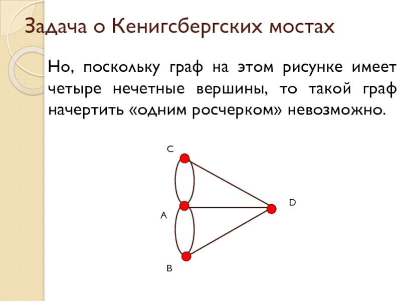 нечетные вершины, то такой граф начертить «одним росчерком» невозможно.
