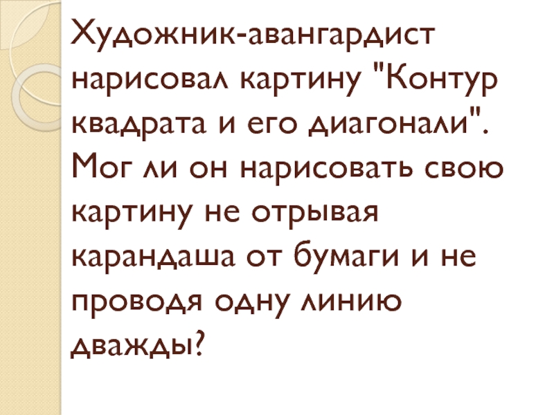 Слайд 13Художник-авангардист нарисовал картину "Контур квадрата и его диагонали". Мог ли он