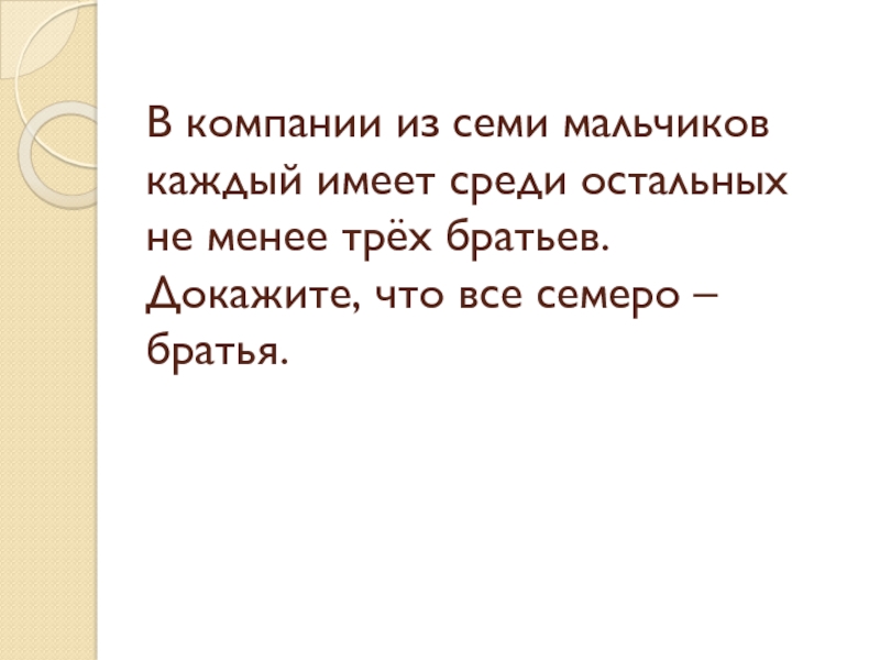 Слайд 17В компании из семи мальчиков каждый имеет среди остальных не менее