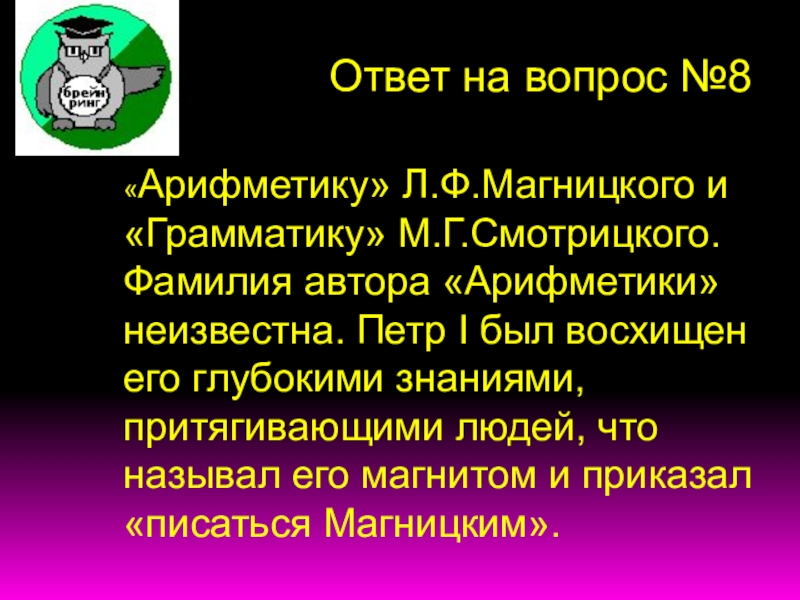 «Арифметику» Л.Ф.Магницкого и «Грамматику» М.Г.Смотрицкого. Фамилия