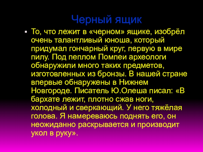 То, что лежит в «черном» ящике, изобрёл очень талантливый юноша,