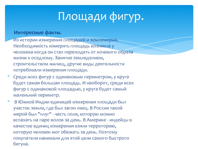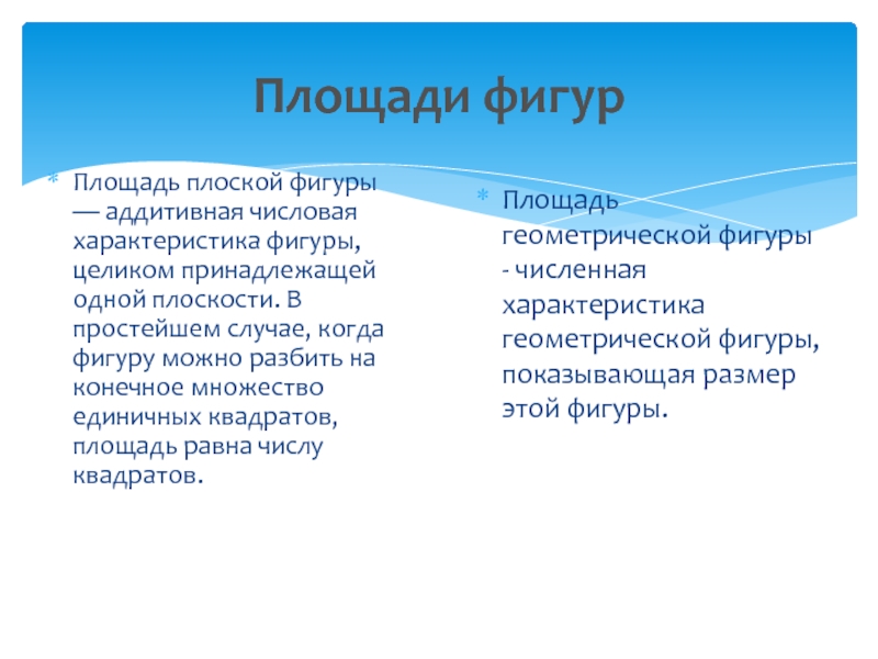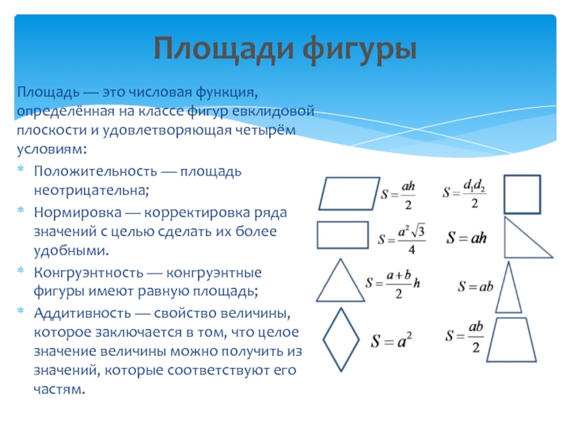 Площадь геометрической фигуры - численная характеристика геометрической фигуры, показывающая размер этой фигуры.
