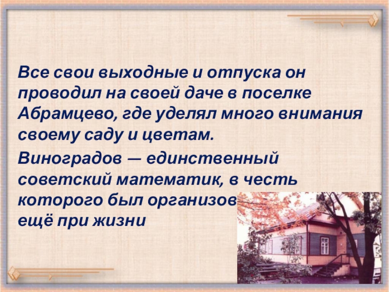 Виноградов — единственный советский математик, в честь которого был организован дом-музей ещё при жизни