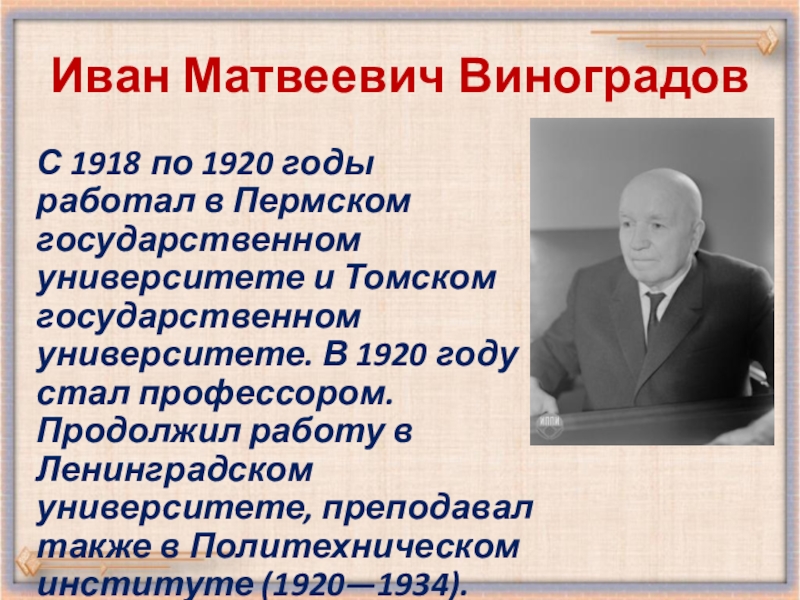 Слайд 6Иван Матвеевич Виноградов