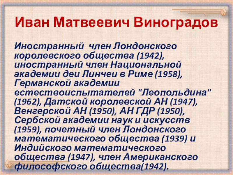 Слайд 4Иван Матвеевич Виноградов