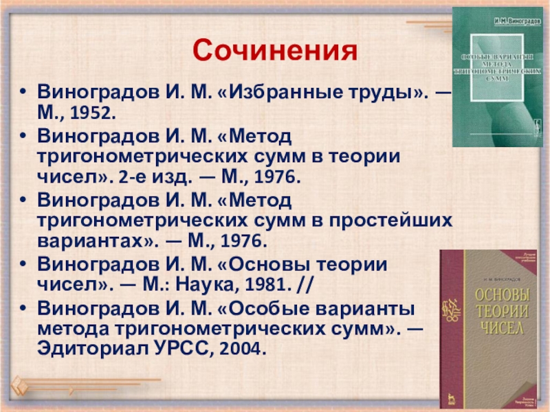 Виноградов И. М. «Избранные труды». — М., 1952.