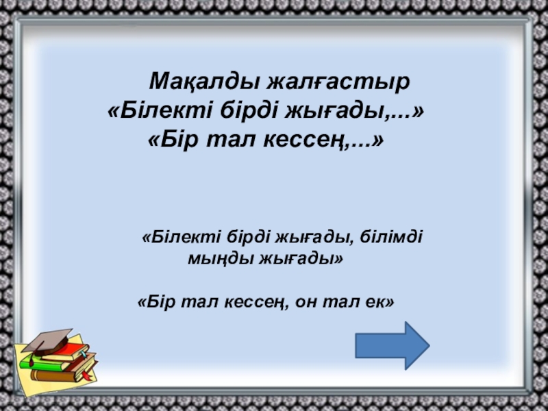 Мақалды жалғастыр «Білекті бірді жығады,...»